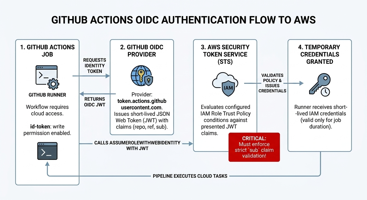 A good mental model is that OIDC moves the secret from “stored in GitHub” to “encoded in policy logic.” If policy logic is too permissive, the system can still be compromised.