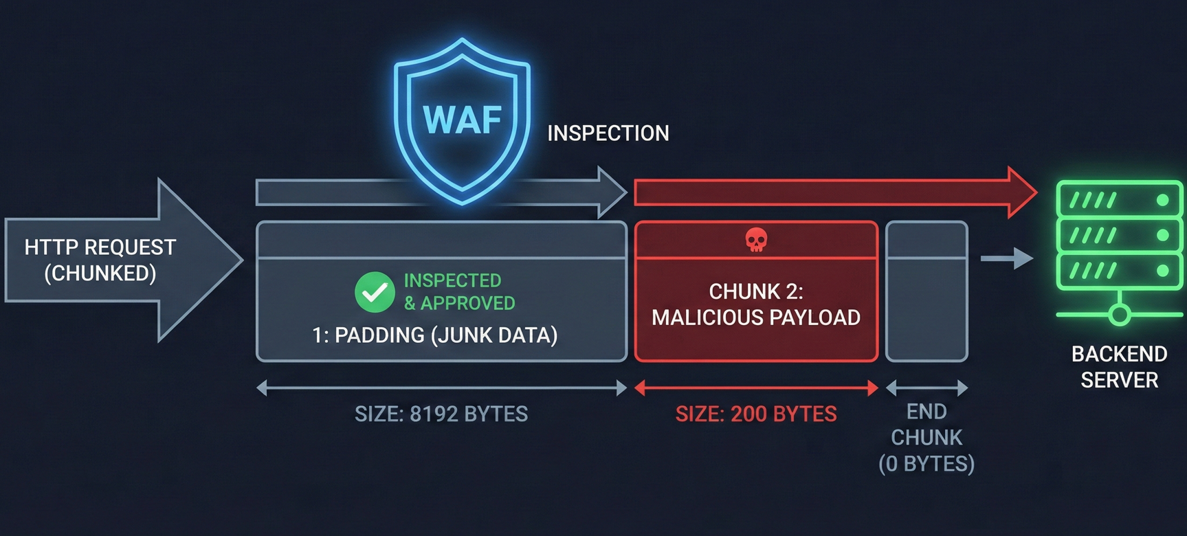 - If the WAF only inspects the first chunk before giving up or miscalculating the boundary, the backend server will seamlessly reassemble the chunks and execute the payload.