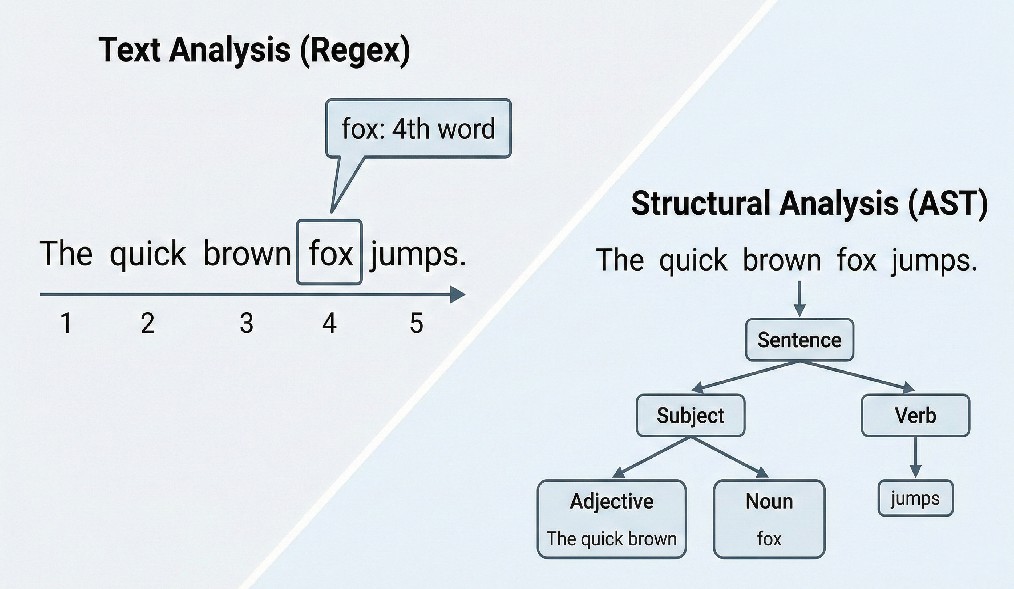 An Abstract Syntax Tree (AST) transforms that raw text into a structured, machine-readable representation. It breaks code into nodes that represent its grammatical components.